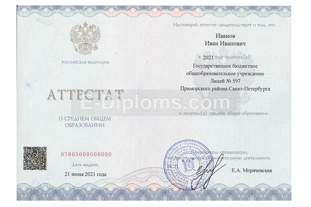 У нас на сайте Вы можете купить аттестат аттестат нового образца с QR-кодом на бланке, которые стали выдавать в 2021 году во всех школах России. Доставка бесплатна, оплата при получении, для проживающих в регионах доступна услуга «макет», есть скидки. При заказе до 14.00 привезем уже завтра по Москве и СПб!